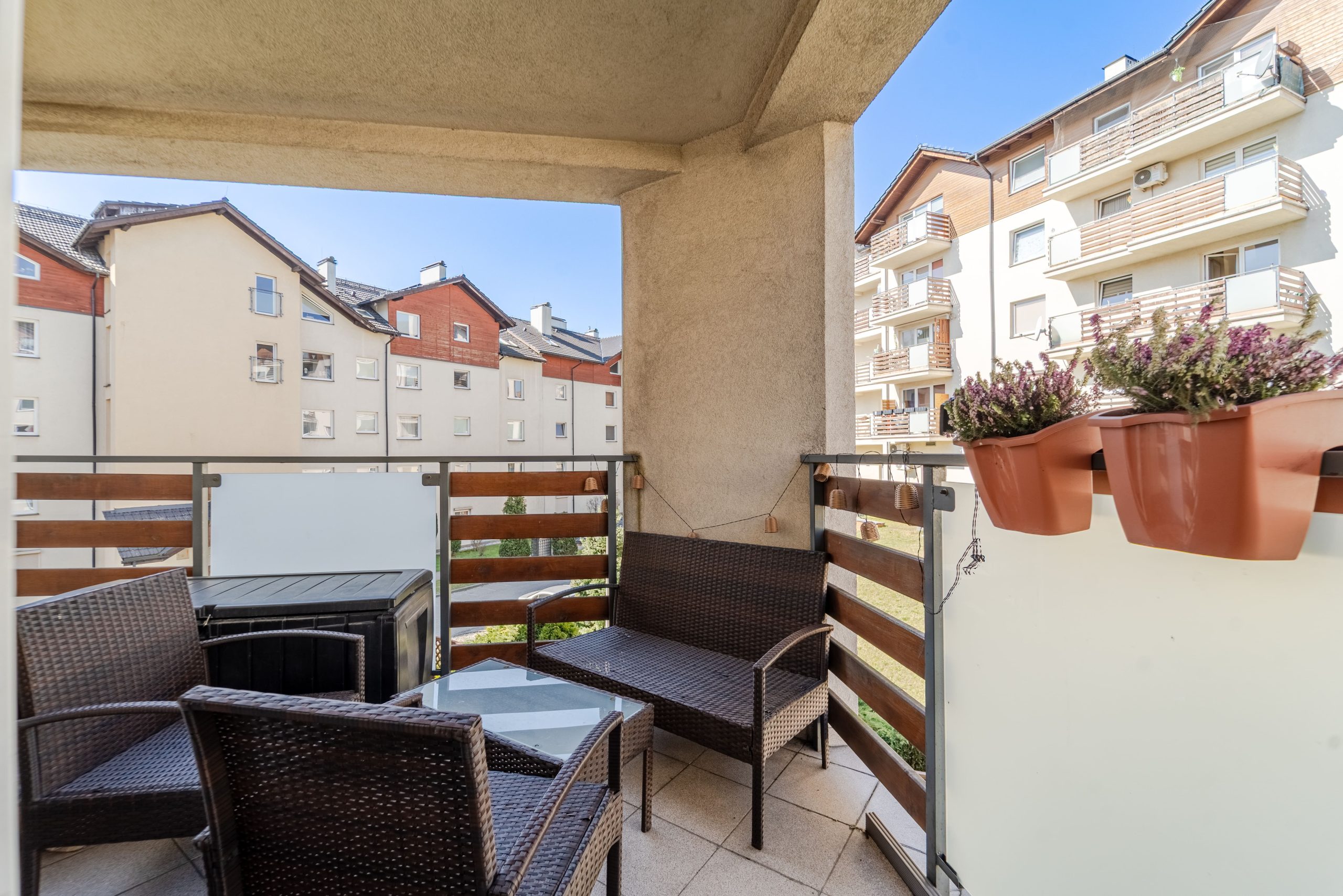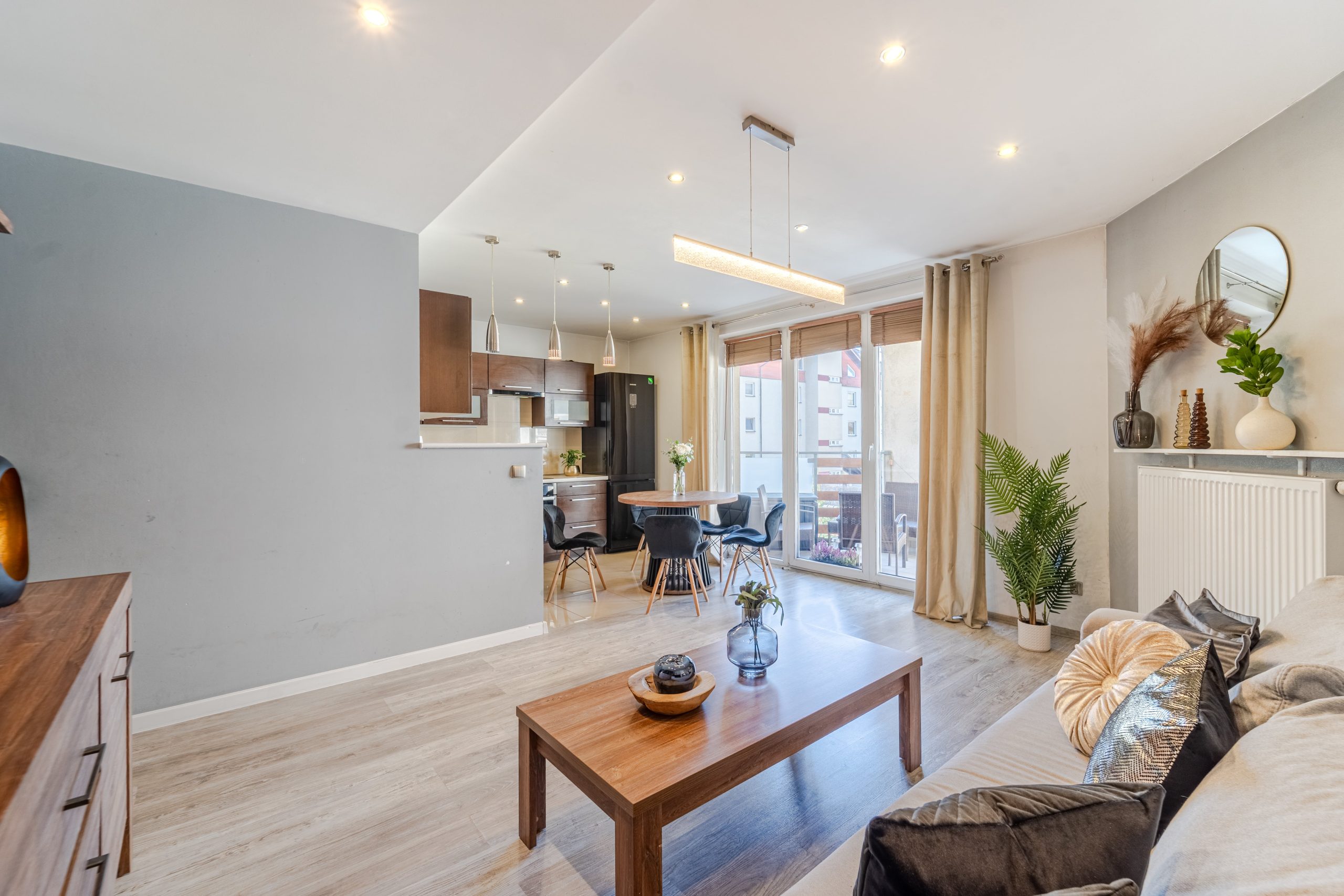 Z salonu wychodzisz bezpośrednio na balkon – poranna kawa z widokiem na zieleń albo wieczorny relaks na świeżym powietrzu staną się Twoją codziennością.