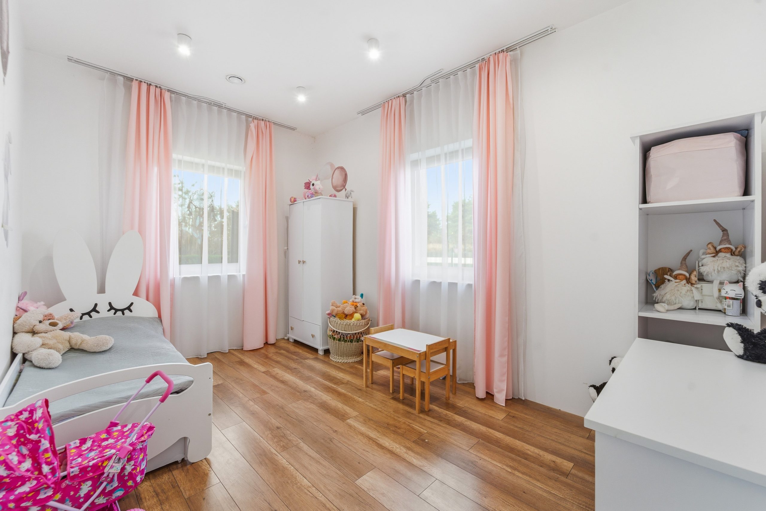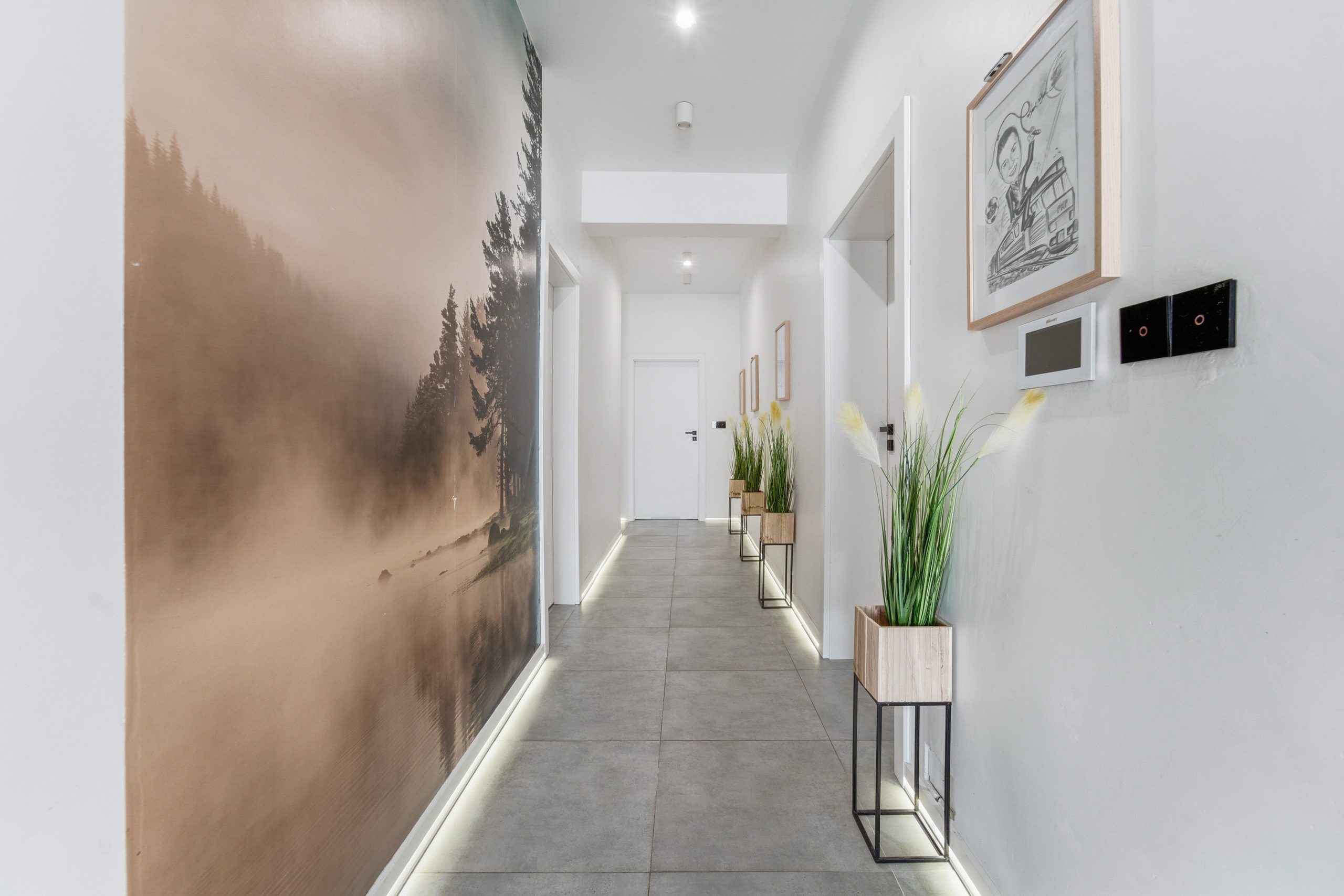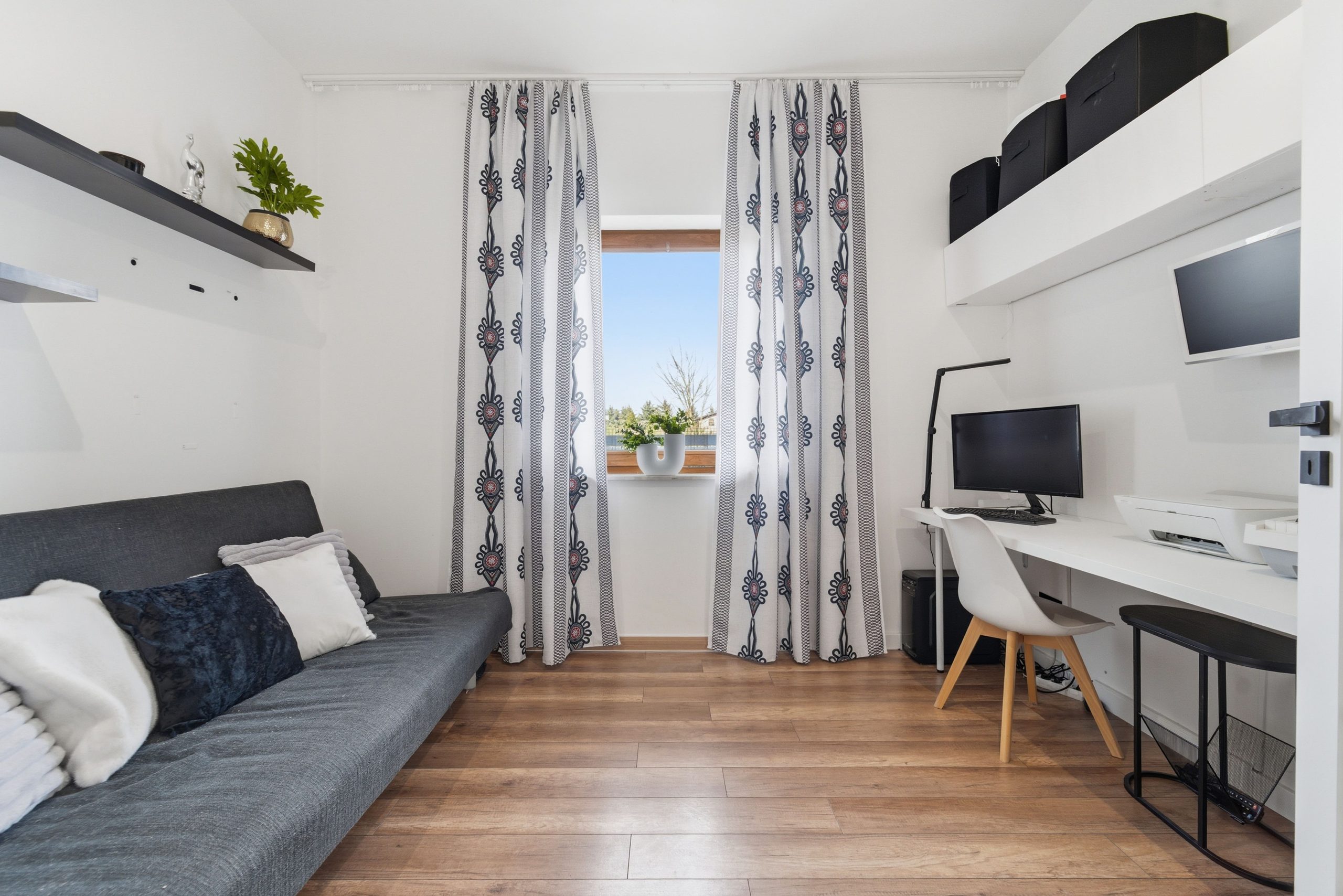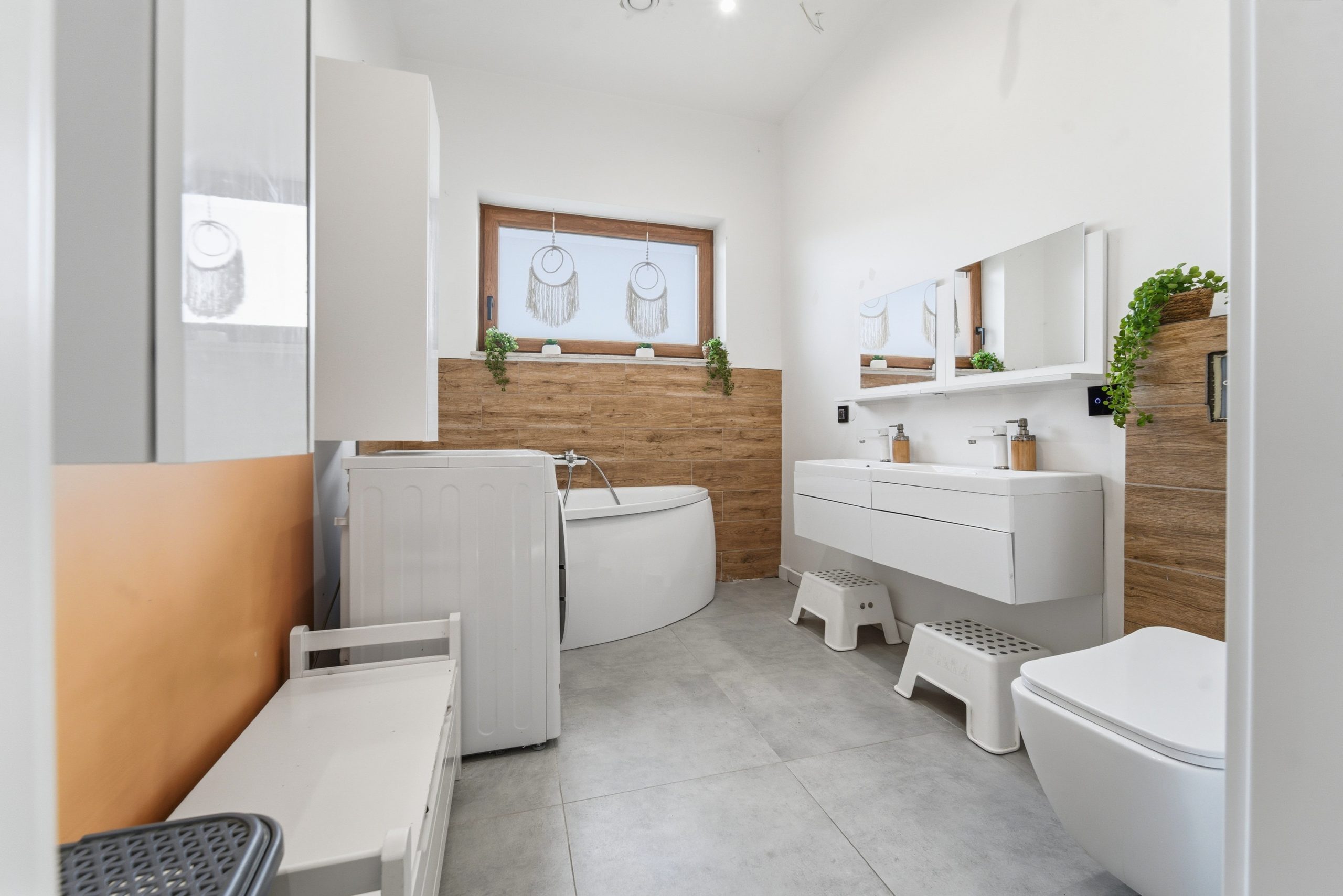 • Podłogi: panele wysokiej klasy, płytki gresowe