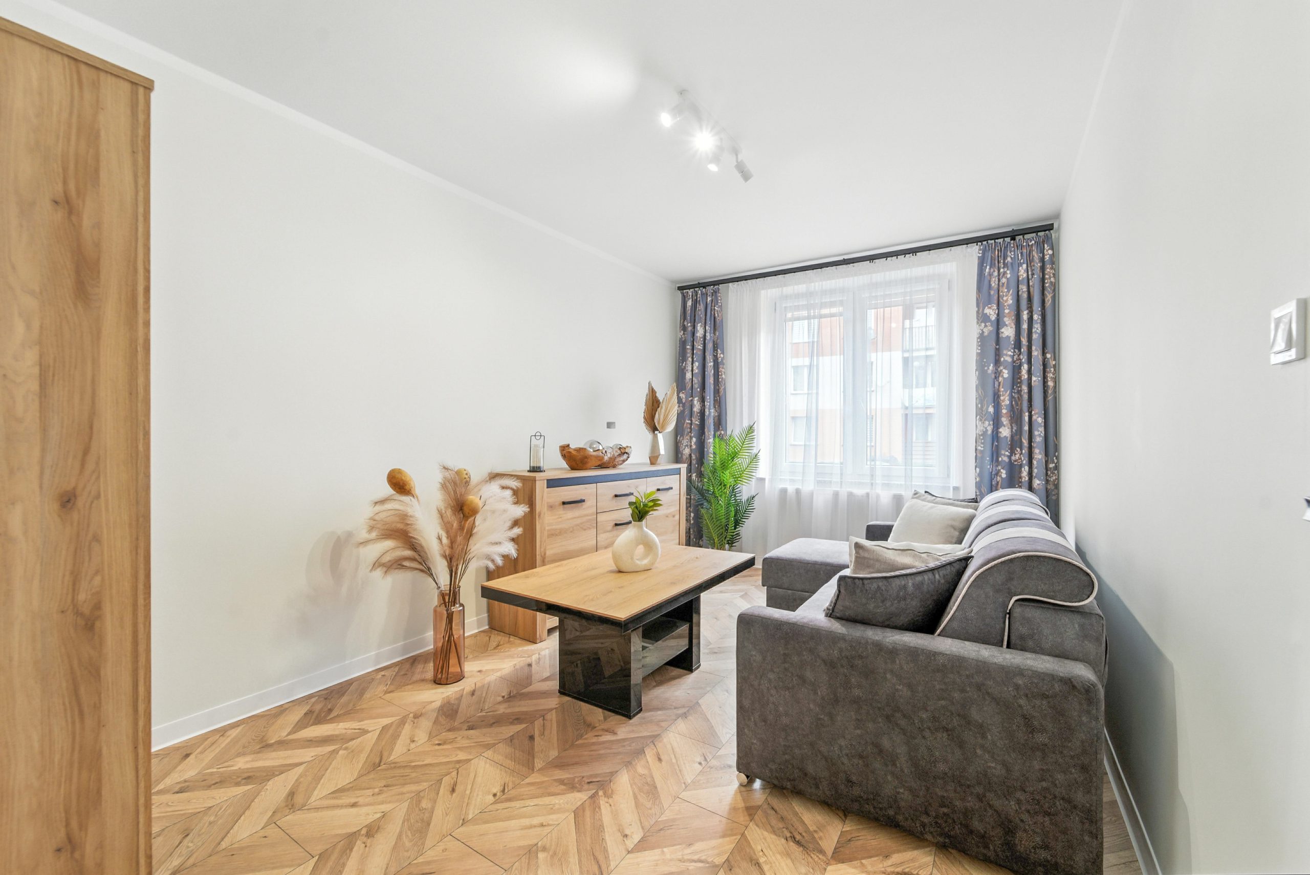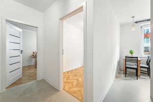 Mieszkanie po generalnym remoncie, dopieszczone w każdym szczególe, pachnie nowością. Wchodzisz przez nowe, solidne drzwi wejściowe, stawiasz pierwsze kroki na podłodze, która nie skrzypi, nie trzeszczy – po prostu prowadzi Cię dalej. Nowe drzwi wewnętrzne podkreślają świeżość wnętrza, a funkcjonalny układ sprawia, że każde pomieszczenie ma sens.