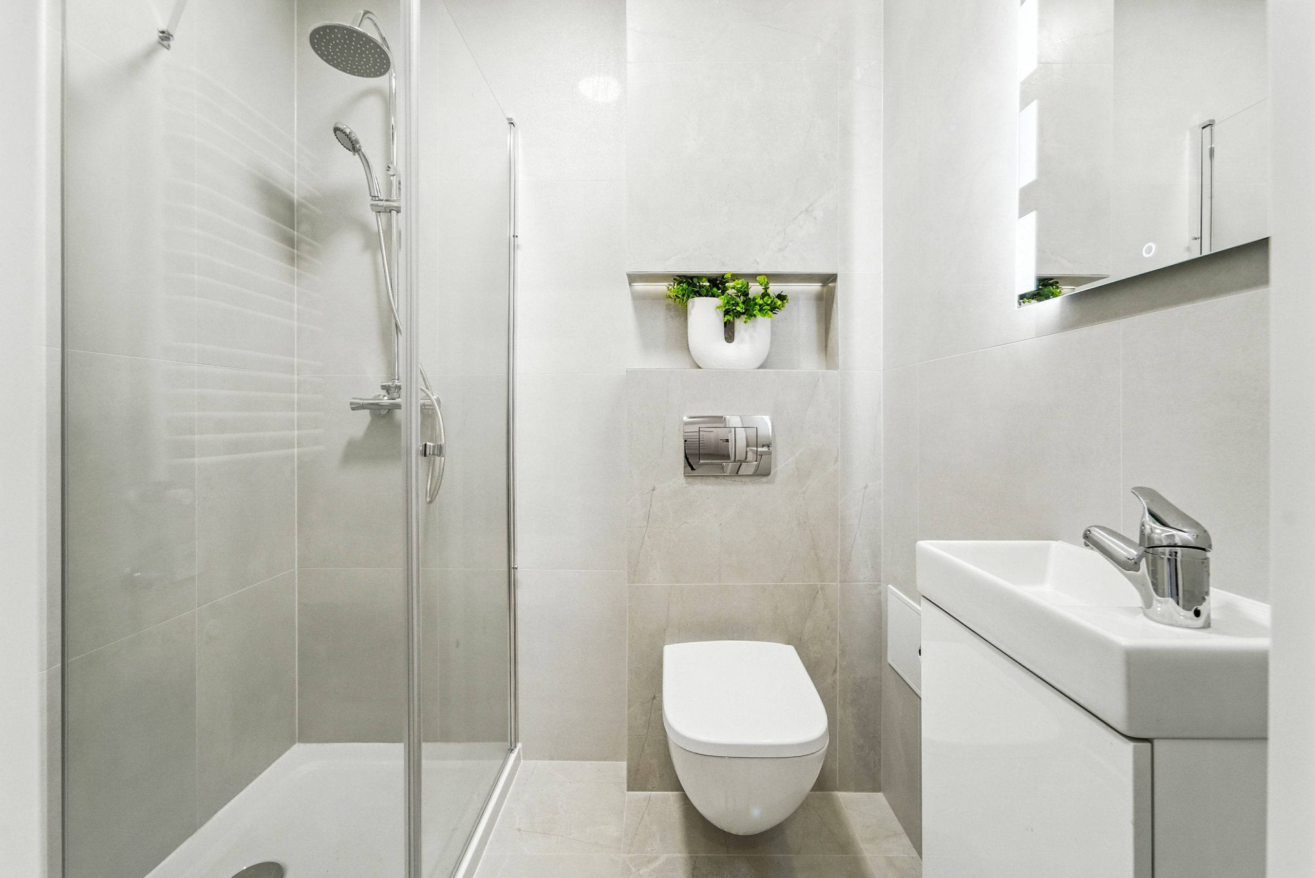 • Łazienka z prysznicem i WC – nowoczesna, czysta, z klasą.