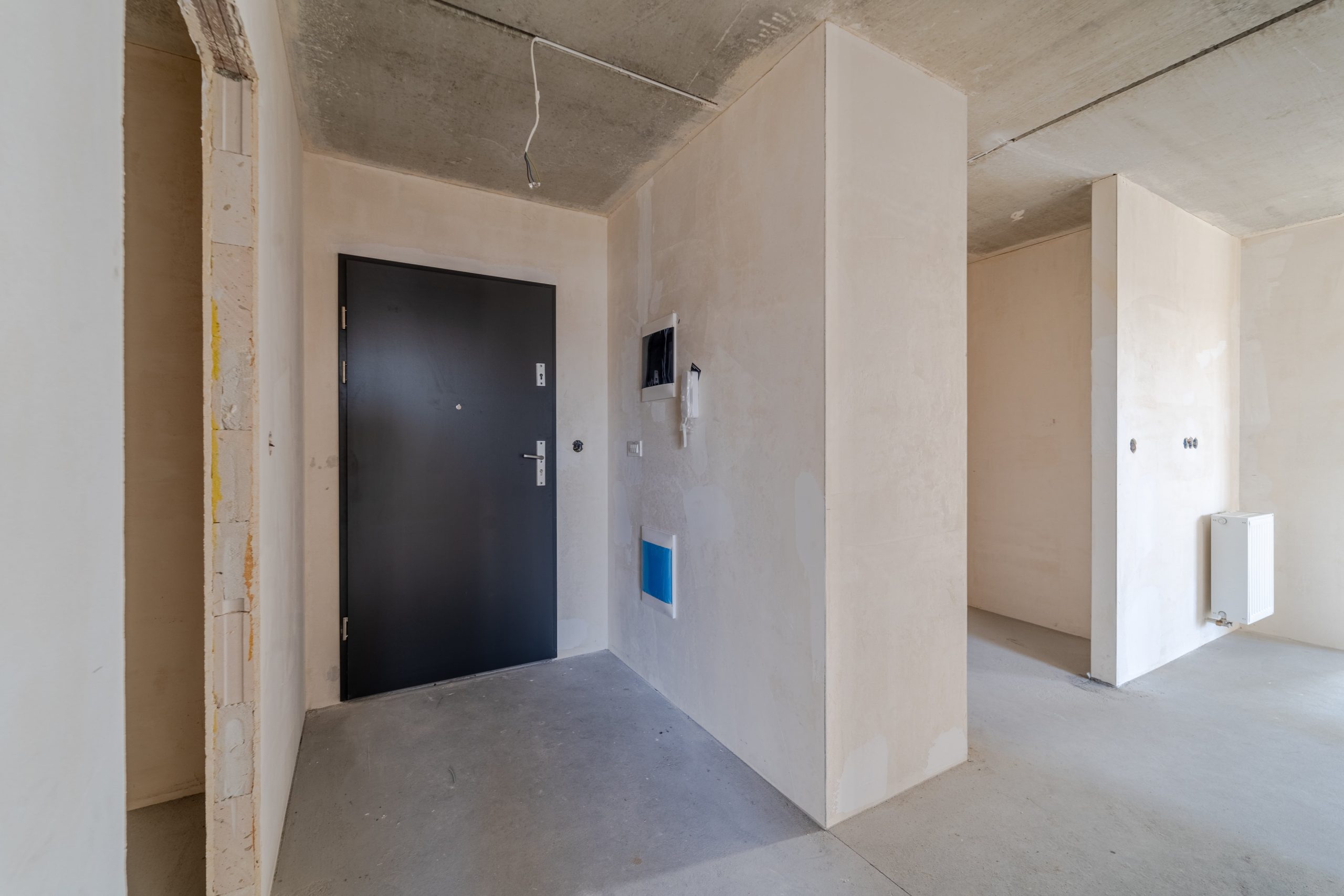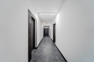 Mieszkanie wyposażone jest w innowacyjny system smart home, który pozwala na zdalne sterowanie ogrzewaniem, oświetleniem oraz zaworami wody za pomocą aplikacji mobilnej lub manualnie, co zapewnia komfort i oszczędność energii.
